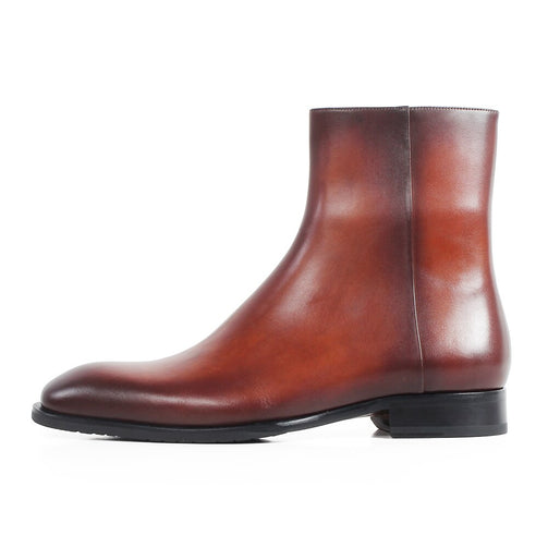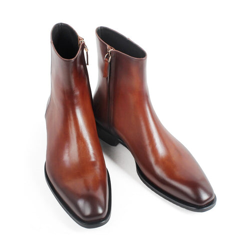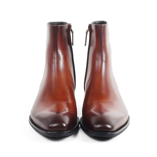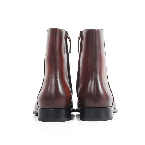 Square Toe Genuine Cow Leather Men's Ankle Boots Brown Patina Handmade Bespoke Shoes Autumn Military Male Botas Hombre
