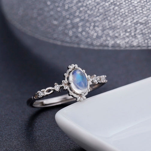 Vintage Style 925 Sterling Silver Round Natural Moonstone Rings For Women