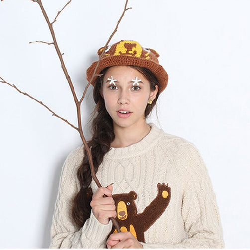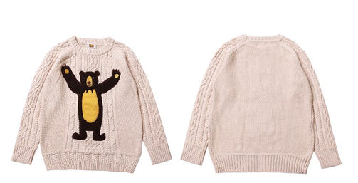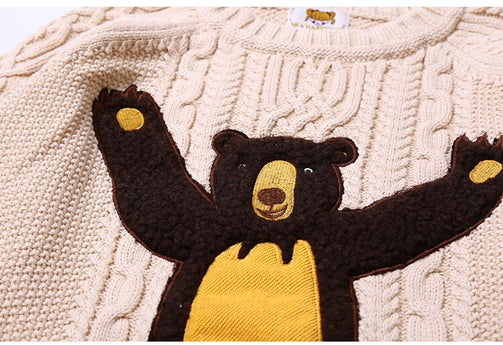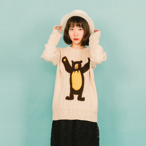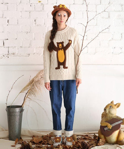 Winter Fall 2017 New Vintage Original Women Pullover Sweater Thick Wool Twist Ladies Knitted Top Sweaters Bear Patchwork Loose
