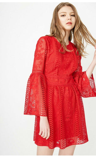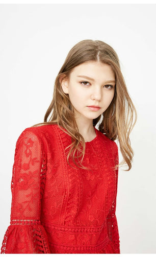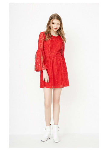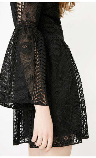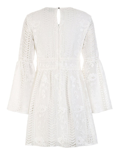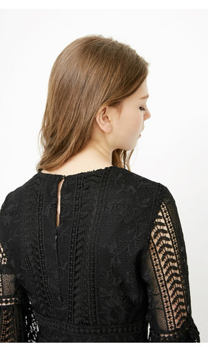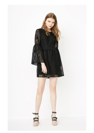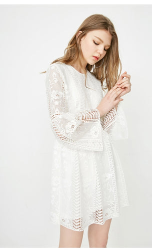Women's See-through Crochet Long-sleeved Dress
